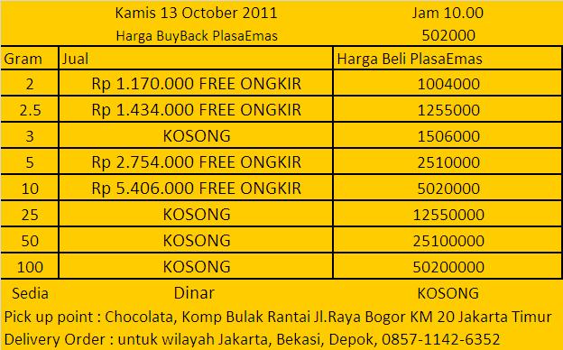 HARGA EMAS HARI INI 13 OCTOBER 2011